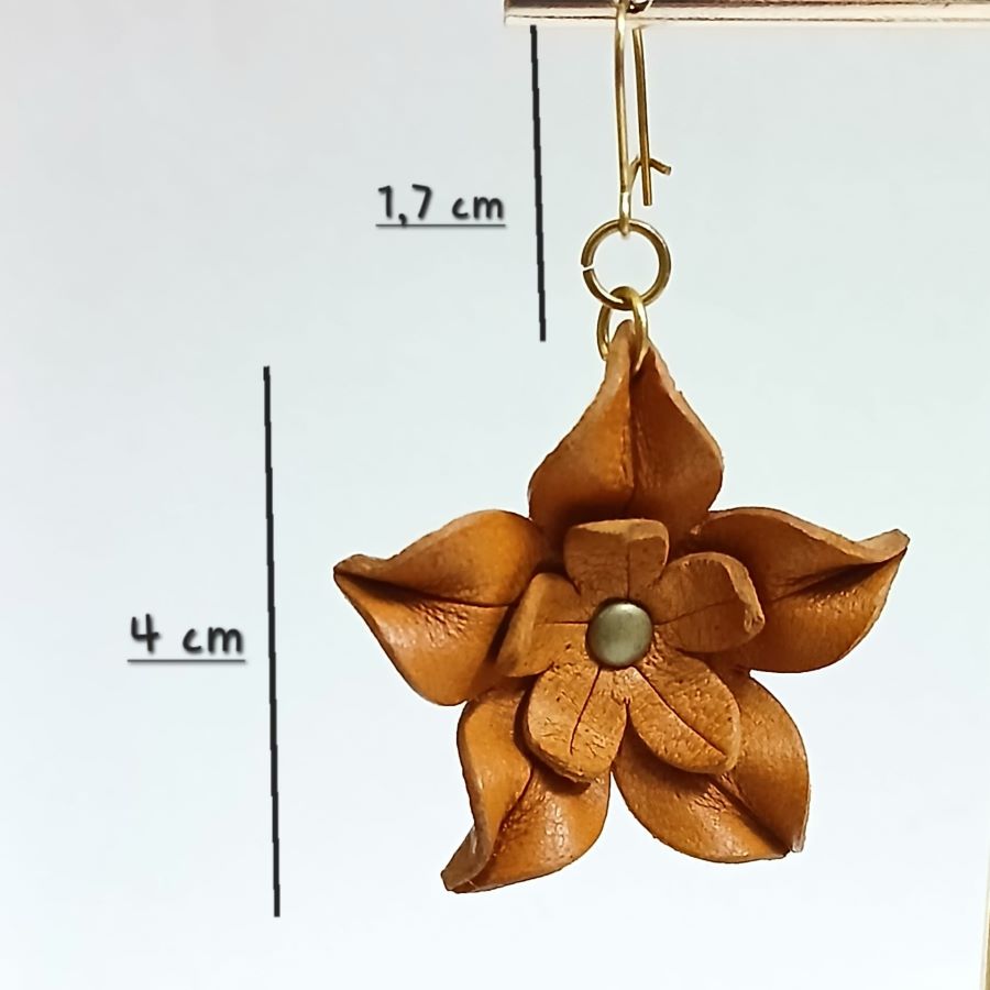 Estos pendientes de cuero con forma de flor doble están realizados a mano, en un cuero suave y ligero que los hace muy cómodos de llevar.