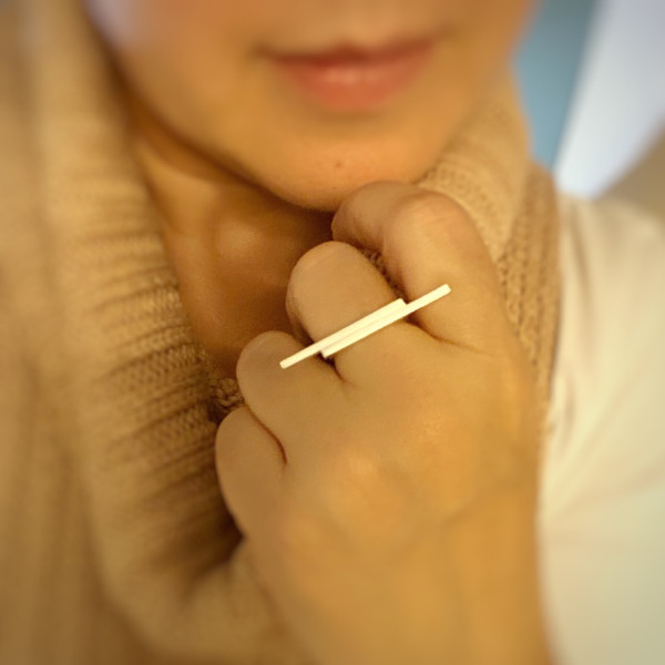 El Anillo Minimalista Doble Barras se adapta a múltiples estilos y ocasiones. Puedes llevarlo solo como pieza central o combinarlo con otros anillos para crear un look más personal.