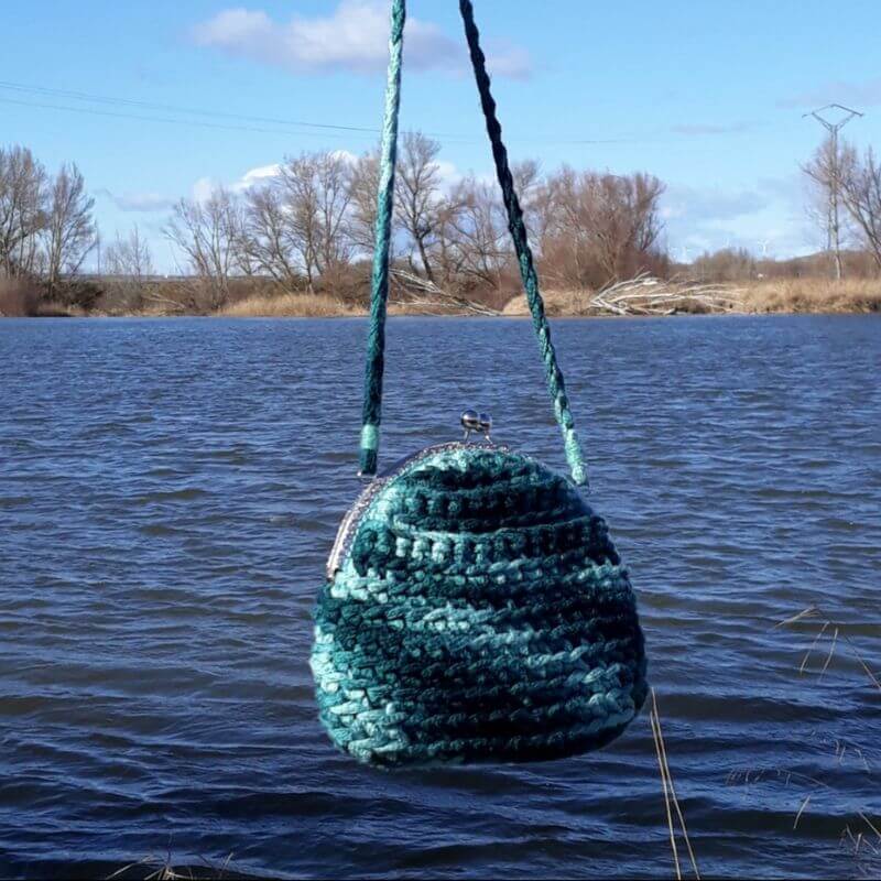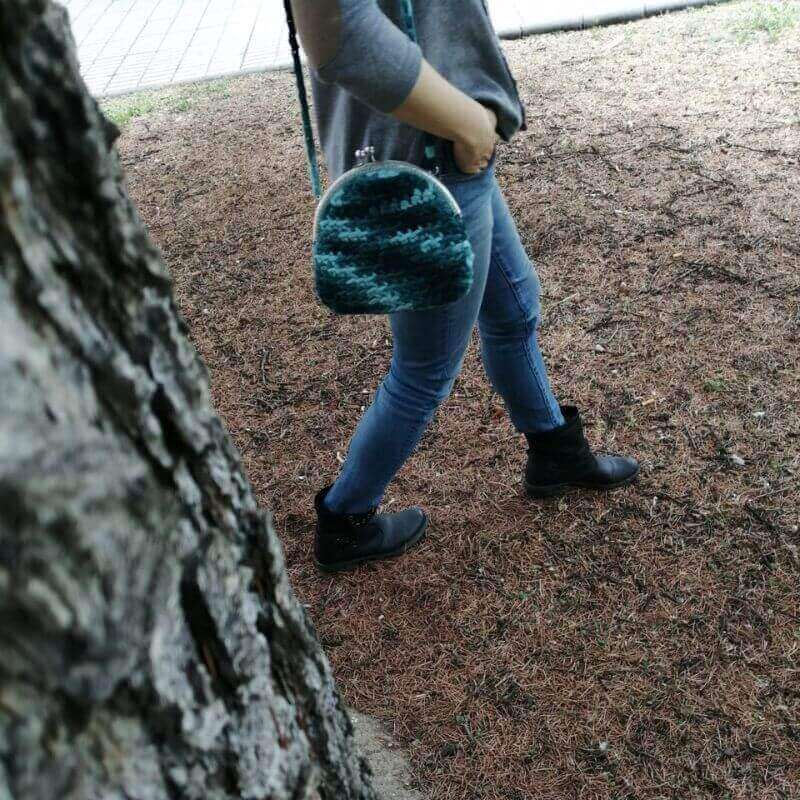 Bolso de estilo vintage en tonos verdes. Un bolso único y exclusivo hecho a mano a crochet con boquilla plateada. El Bolso Crochet Verde tiene asa del mismo material que el bolso, a ganchillo, para colgar del hombro. Está forrado con tela por dentro.