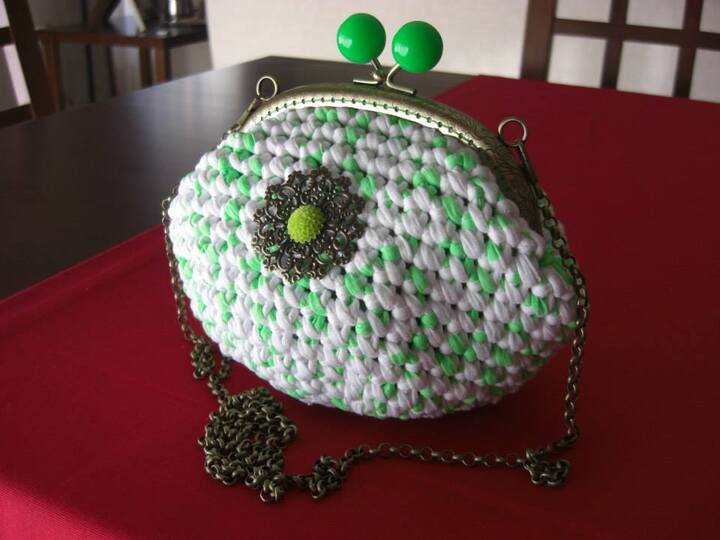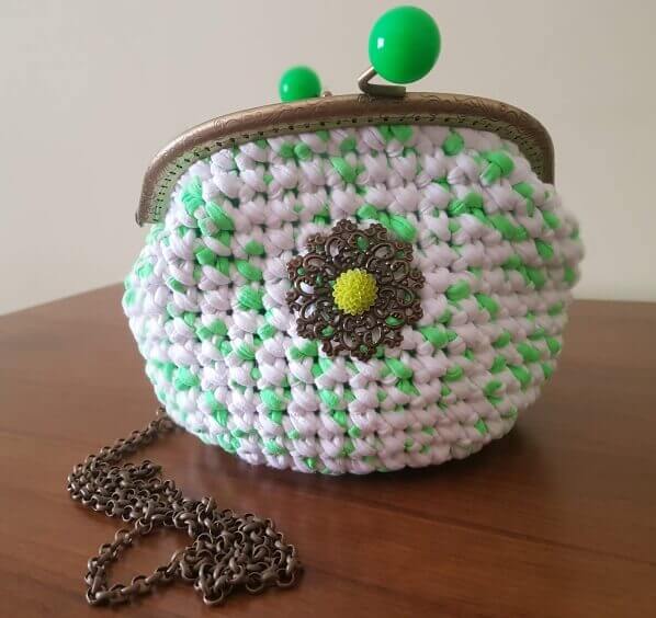 Bolso de trapillo tejido en ganchillo con boquilla estilo vintage