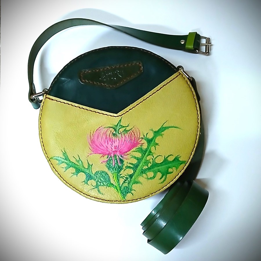 Decoración: cardo pintado a mano (pintura especial para cuero).