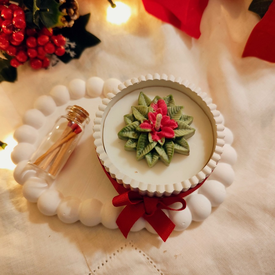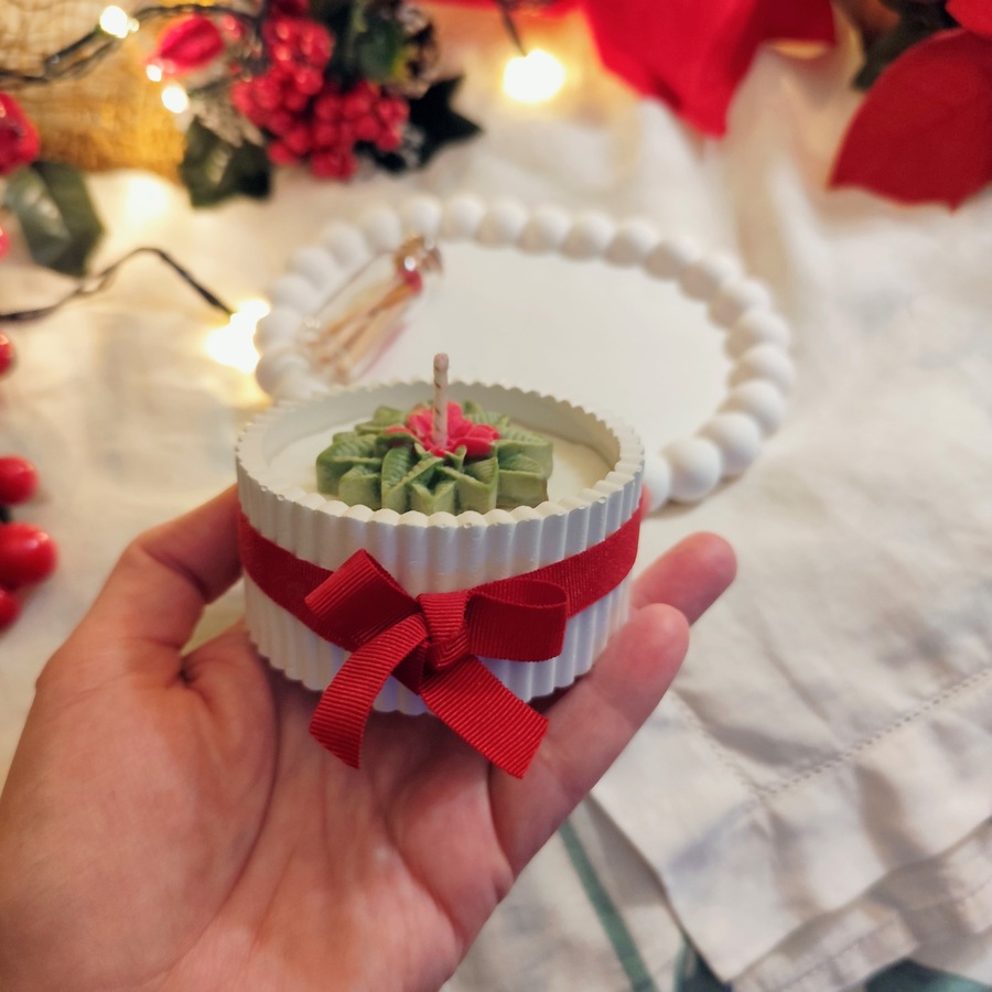 Este set incluye una vela artesanal elaborada al 100% con cera de soja, cuidadosamente vertida y decorada a mano, con un exquisito aroma de manzana caramelizada, una fragancia envolvente que combina dulzor, calidez y notas gourmet típicas de la Navidad.