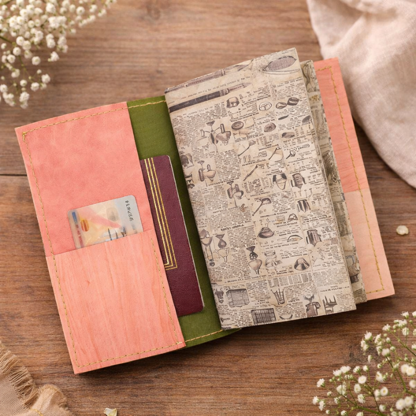Este cuaderno viaje reciclado en tono rosa es un diario ligero y práctico, con cuadernillos intercambiables que te permiten reutilizarlo y adaptarlo a cada viaje sin tener que comprar otro.