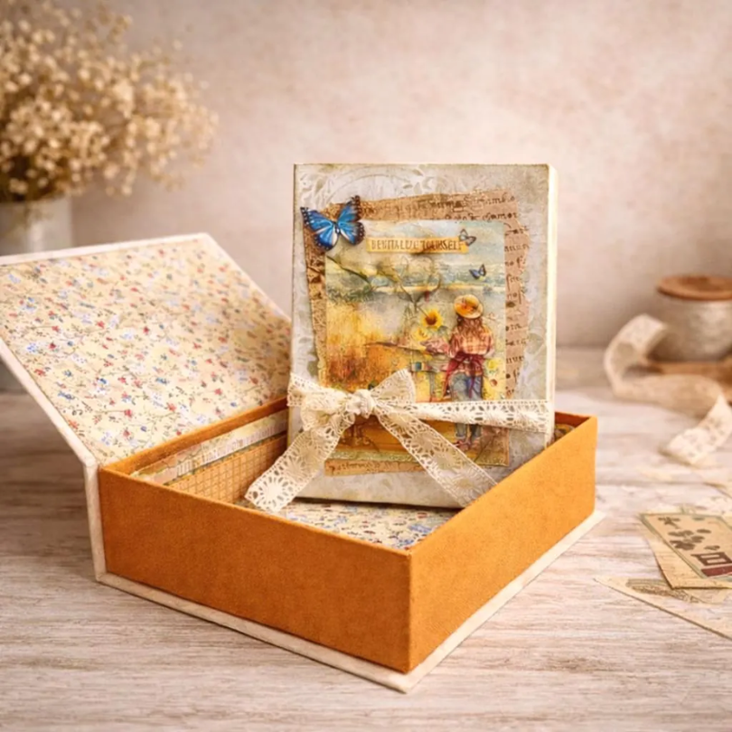 Este diario creativo hecho a mano está pensado para quienes buscan algo más que un cuaderno. A diferencia de los diarios convencionales, aquí no hay normas: es un espacio libre para escribir, crear y guardar recuerdos a tu manera.