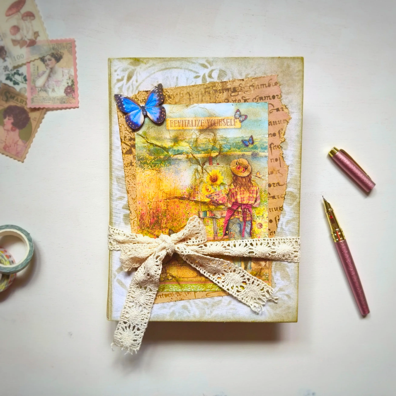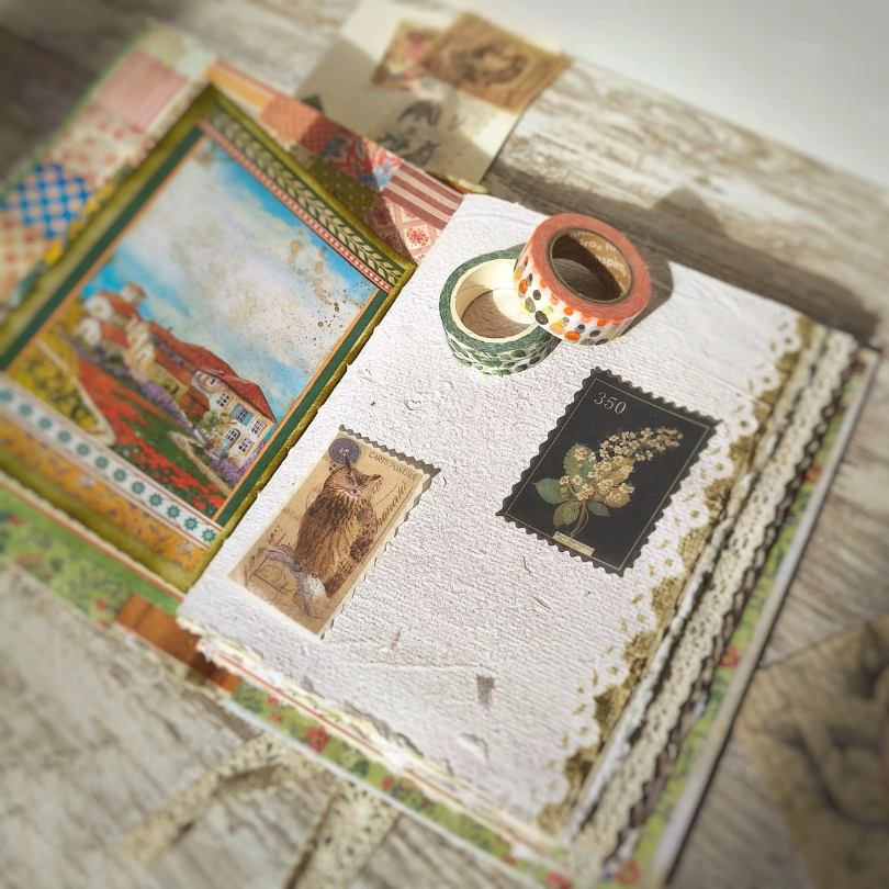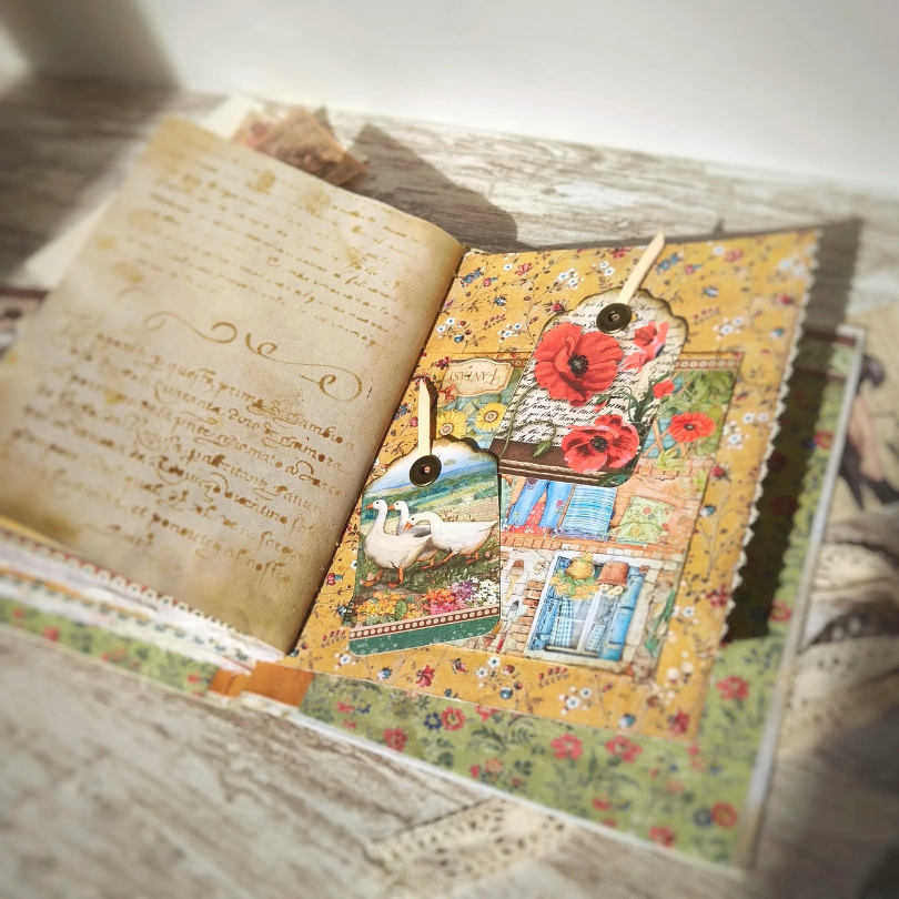 • 42 páginas decoradas con papeles vintage y pétalos naturales