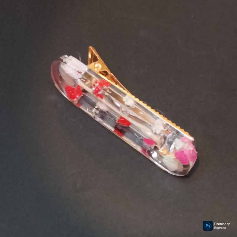 Dale un toque único a tu peinado con esta horquilla hecha a mano con resina y detalles de fresas. Cada pieza está elaborada cuidadosamente, lo que las convierte en accesorios exclusivos, con diseños que no se repiten. Son ligeras, resistentes y cómodas para llevar durante todo el día. Ideales para quienes buscan complementar su estilo con un detalle original.