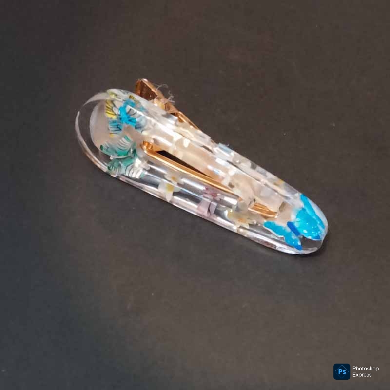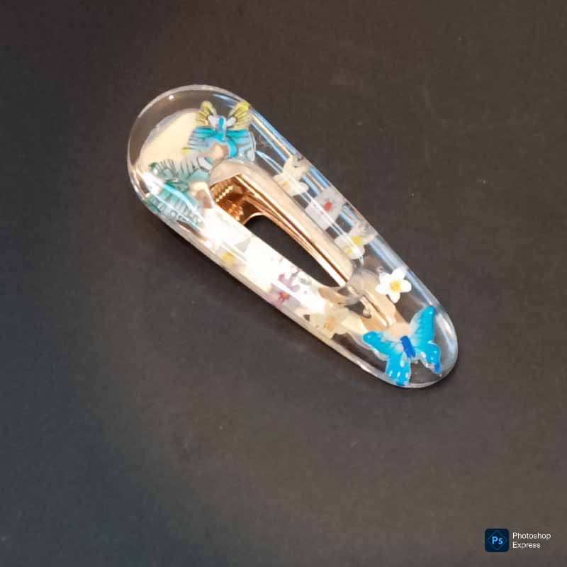 Dale un toque único a tu peinado con esta horquilla hecha a mano con resina y detalles de flores y mariposas. Cada pieza está elaborada cuidadosamente, lo que las convierte en accesorios exclusivos, con diseños que no se repiten. Son ligeras, resistentes y cómodas para llevar durante todo el día. Ideales para quienes buscan complementar su estilo con un detalle original.