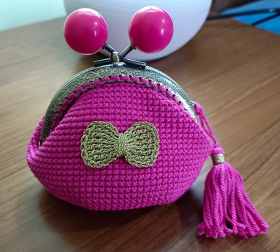 Monedero tejido en ganchillo con boquilla
