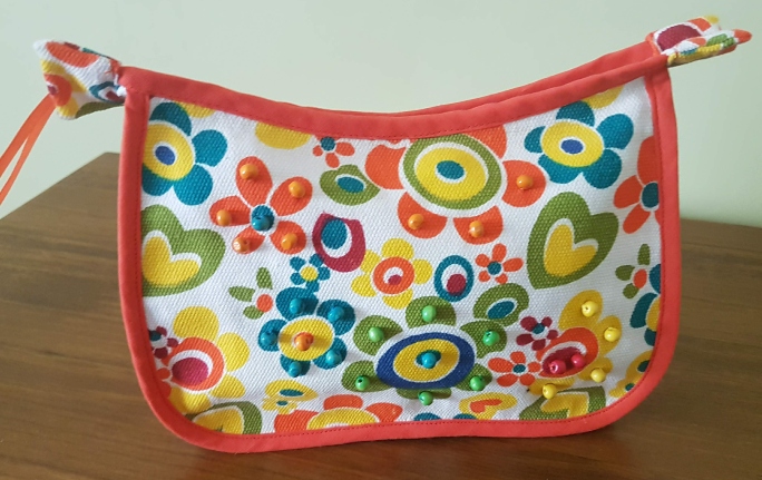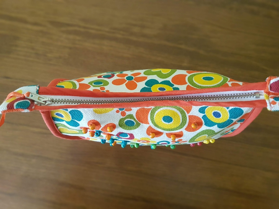 Bies, Cremallera metálica 20cm, Cuentas de madera, Loneta estampada