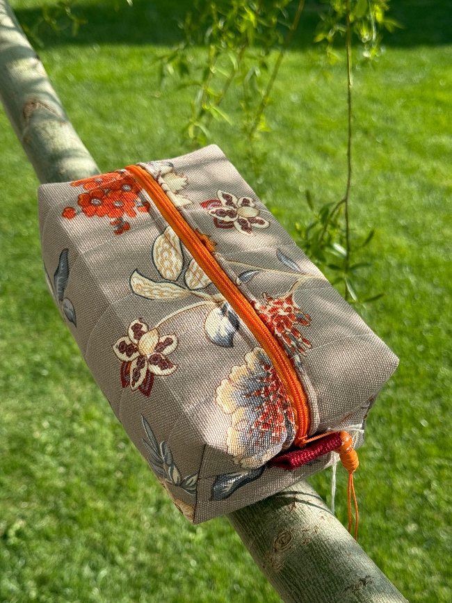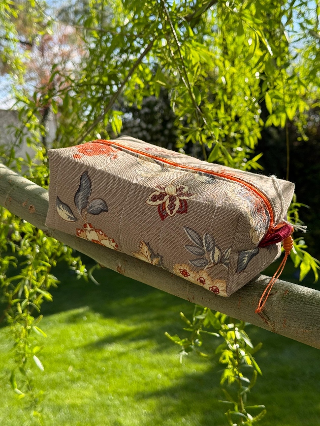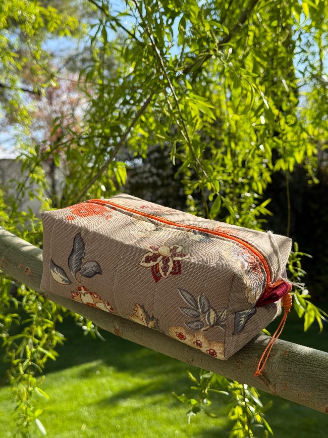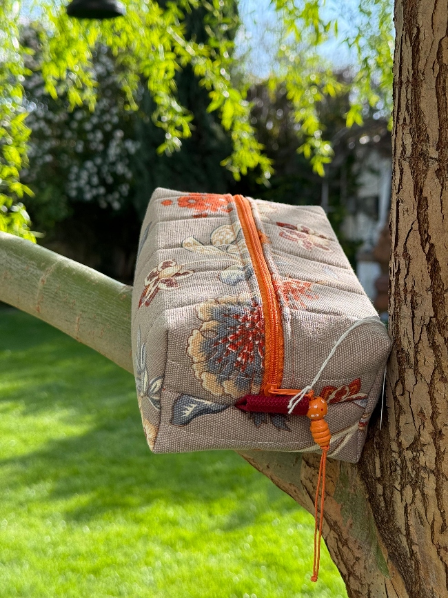 Este neceser de tela combina funcionalidad y estilo en una pieza única. Con un delicado estampado floral en tonos suaves y una cremallera en contraste color naranja, aporta un toque elegante y natural a tu día a día. Su diseño acolchado protege tus esenciales mientras los mantiene organizados, ya sea para maquillaje, productos de cuidado personal o pequeños accesorios.