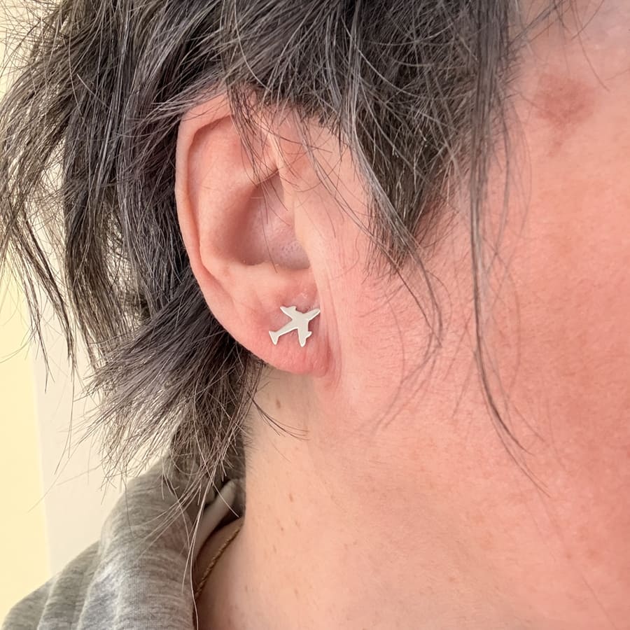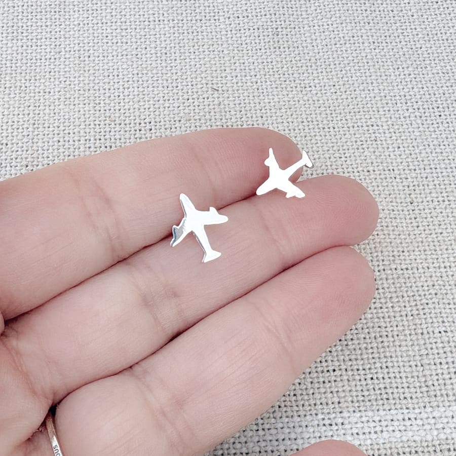 Delicados pendientes con forma de avión elaborados en plata de ley 925.