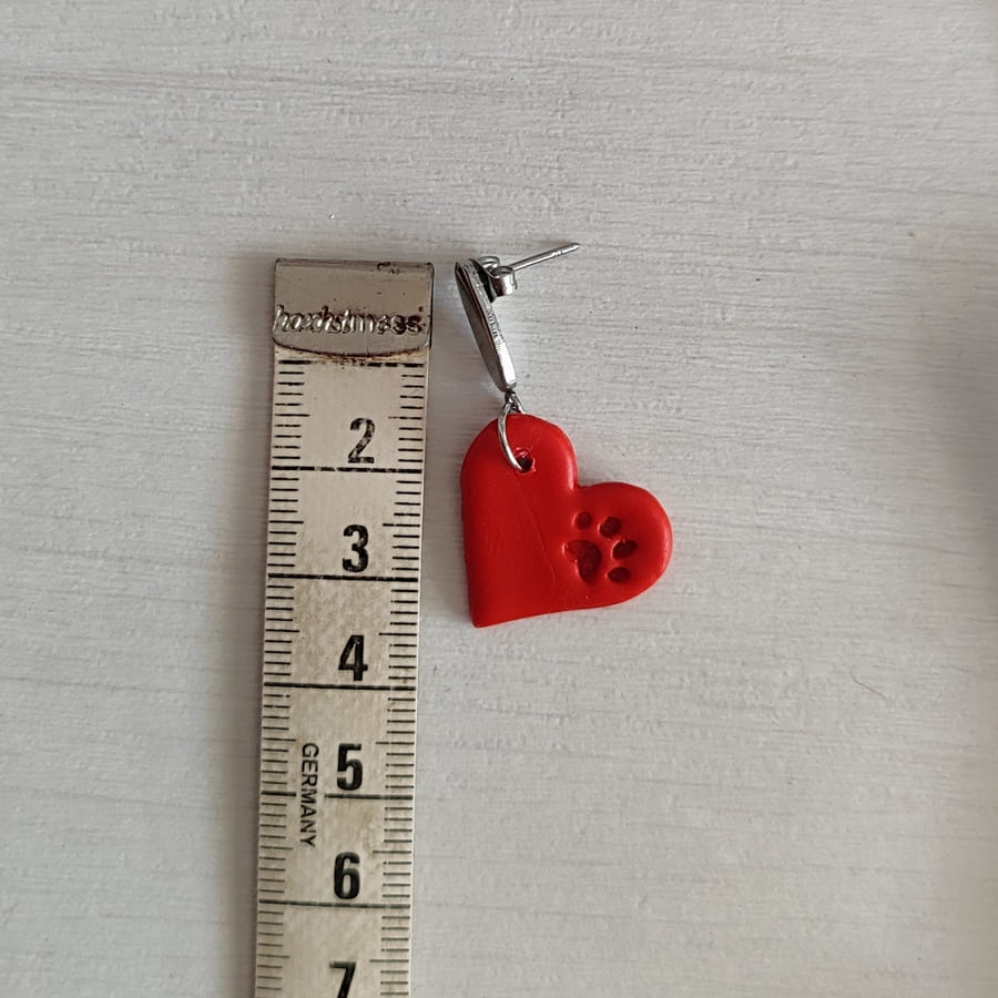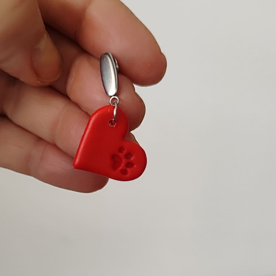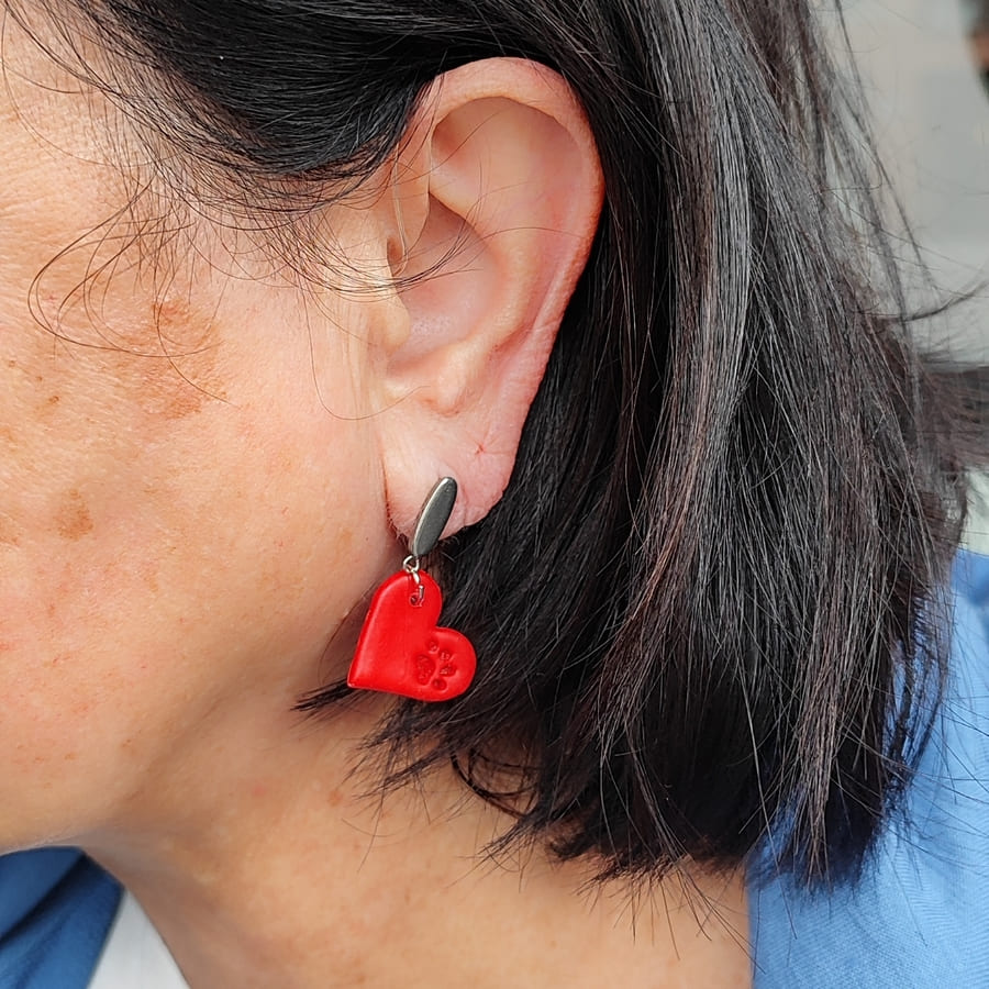 Pendientes corazón rojos con huella de mascota