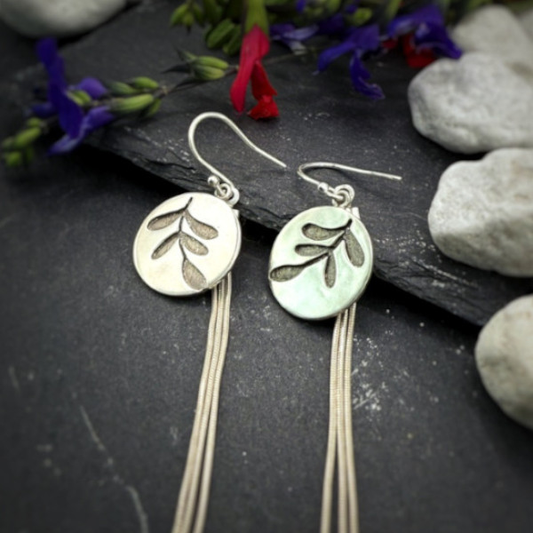 Los Pendientes Cadena y Círculos están elaborados en Plata de Primera Ley (925) y combinan un círculo con diseño de mariposa u hoja y cadenas finas que aportan movimiento natural. Su diseño boho chic aporta ligereza y frescura, siendo perfectos tanto para el día como para la noche.